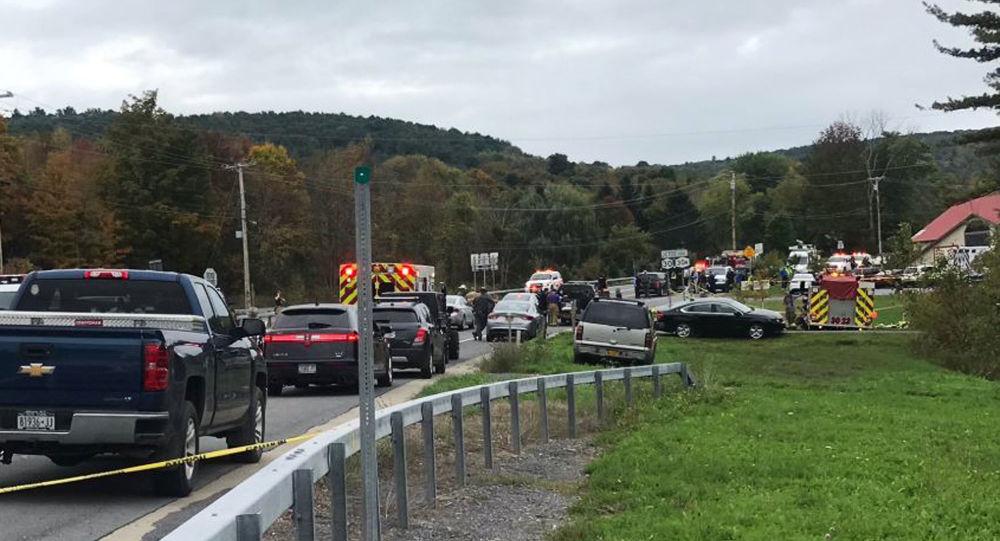 В американском штате Нью-Йорк в округе Шохари на трассе столкнулись несколько машин, в числе которых был лимузин из свадебного кортежа.