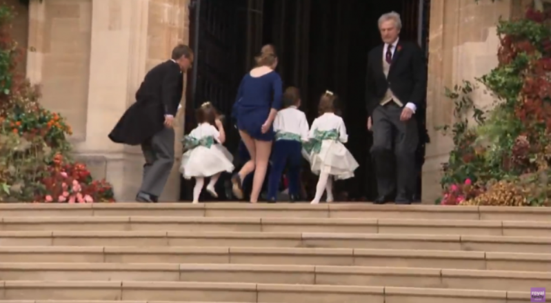 Принц Джордж, принцесса Шарлотта и другие дети несли корзинки с цветами и, сопровождая молодоженов к алтарю, разбрасывали цветы перед ними. Но настоящей "звездой" мероприятия поневоле стала няня, которая присматривала за королевскими отпрысками. Когда женщина поднималась по летнице к часовне, дул сильный ветер, из-за чего подол ее платья полностью поднялся.