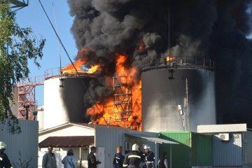 По данным Телеграм-канала Mash, очевидцы слышали хлопок, после чего загорелся резервуар с нефтепродуктами, пожзе горели уже четыре. Разлив топлива составляет тысячу кубических метров.