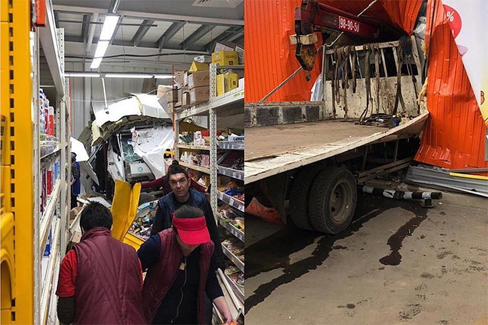 В российском Иркутске произошло серьезное ДТП: грузовик, у которого отказали тормоза, на большой скорости въехал в здание супермаркета в микрорайоне Юбилейный. Пострадала женщина.