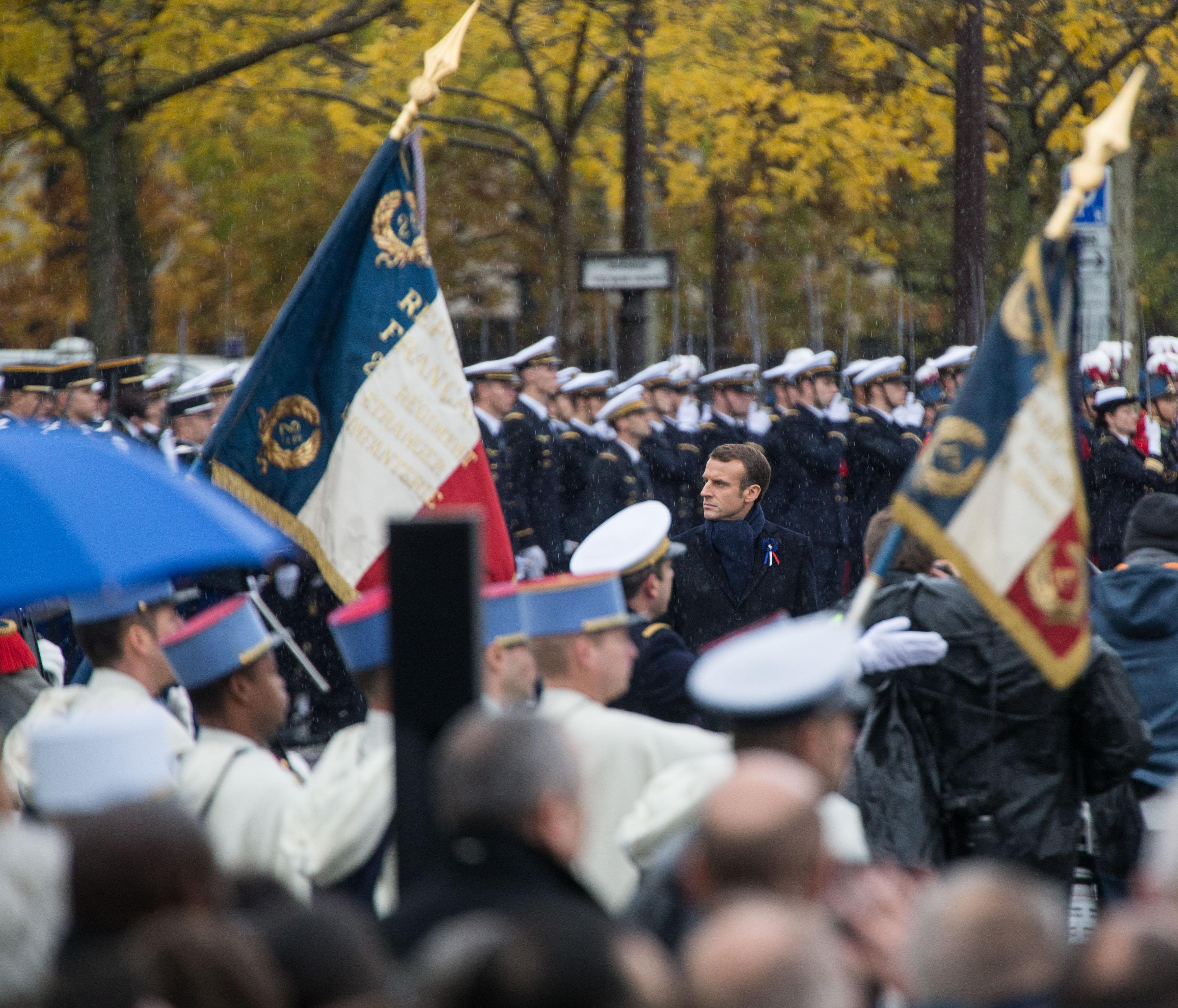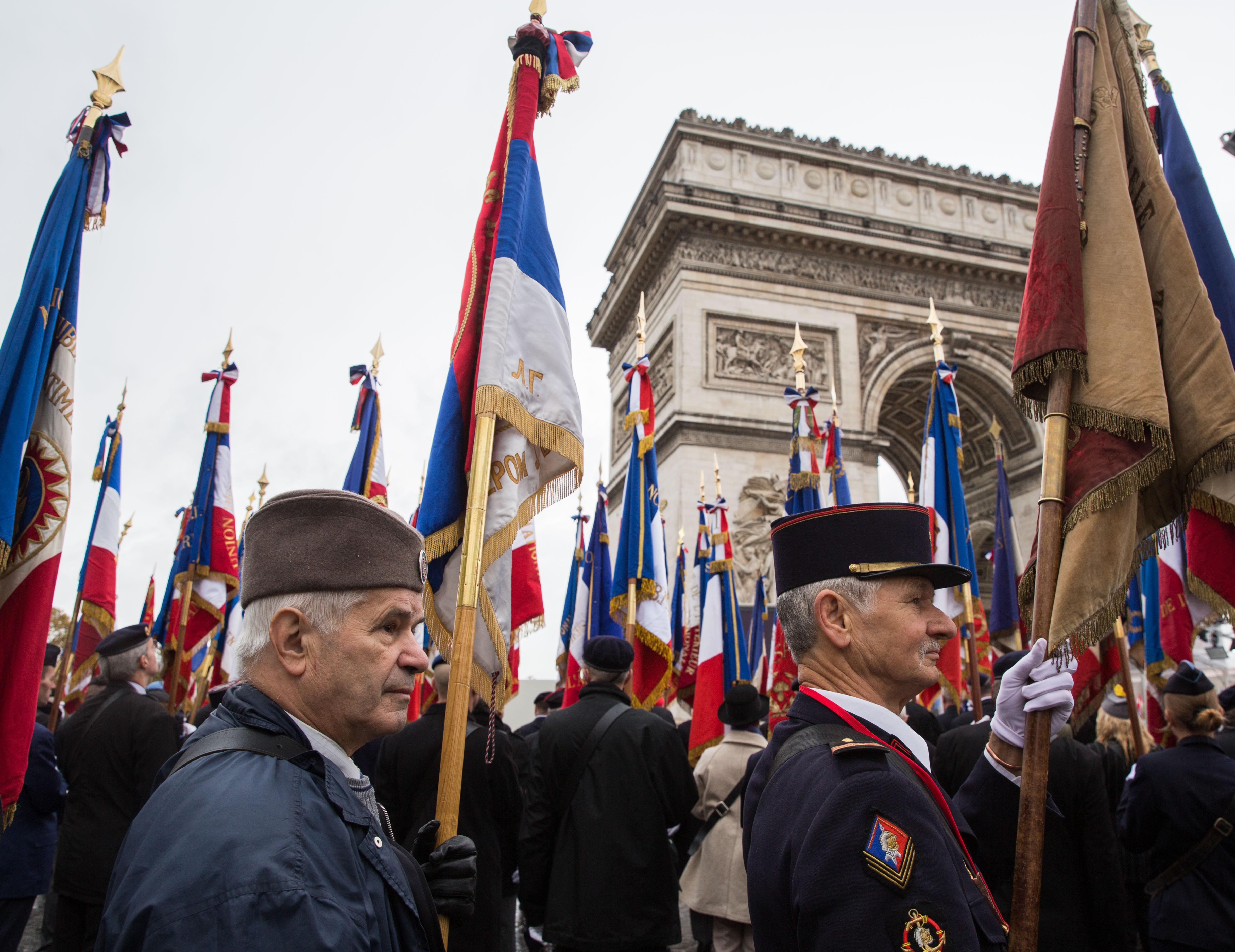 Памятные торжества начались с военной церемонии и исполнения национального гимна Франции. Во время торжественного чествования памяти погибших в Первой мировой войне был зажжен Вечный огонь у Триумфальной арки.
