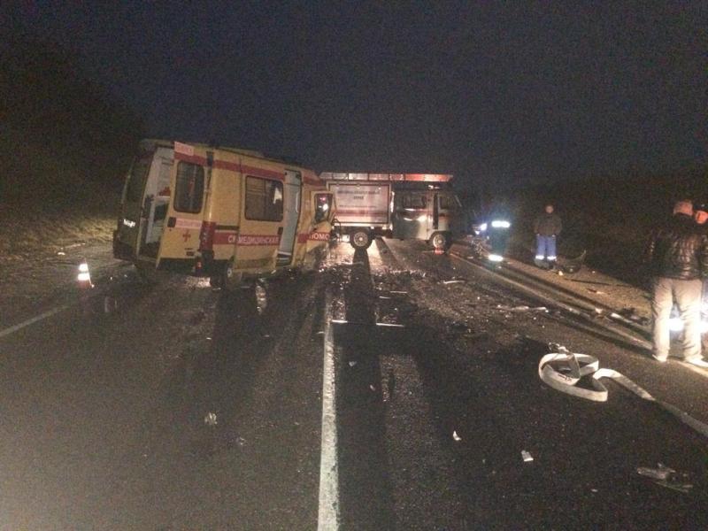 В карете скорой помощи пострадали трое сотрудников, их вместе с одним выжившим пассажиром легкового автомобиля госпитализировали с травмами различной степени тяжести.
