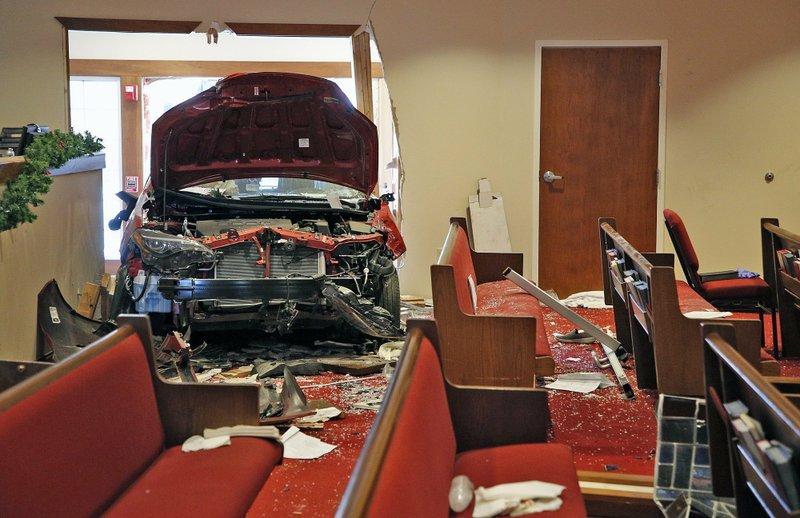 Как рассказал преподобный Джей Андерсон, автомобиль врезался в стену церкви когда люди исполняли гимн. В результате ЧП пострадали шесть человек.
