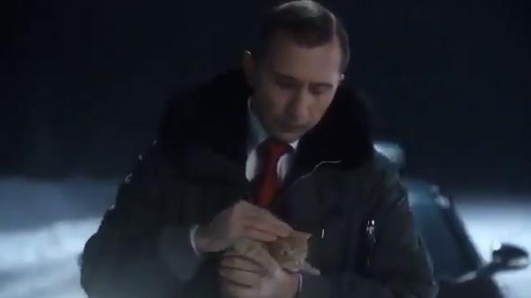 По сюжету видео папа рассказывает маленькому сыну рождественскую сказку о том, как на 420-м км трассы "Барнаул-Красноярск" Путин собственноручно спас маленького котенка.