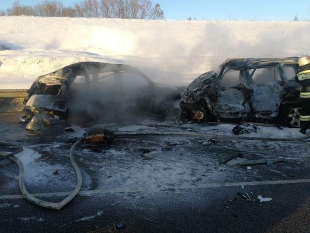 После столкновения два автомобиля загорелись.