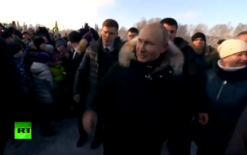В рамках памятных мероприятий Путин прибыл на Пискаревское мемориальное кладбище в Санкт-Петербурге. Там глава Кремля и его поклонники поздравляли друг друга "с праздником". Соответствующее видео обнародовал журналист кремлевского пула Дмитрий Смирнов.