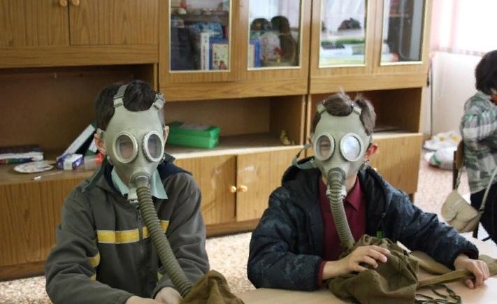В одной из школ города Улан-Удэ опоздавших на урок семиклассников учитель заставил сидеть в противогазах. .