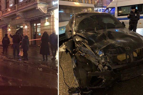 В российском Санкт-Петербурге на Невском проспекте автомобиль БМВ на полной скорости влетел в толпу людей на тротуаре.