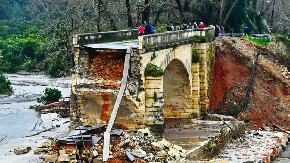 На греческом острове Крит бушует непогода. Проливные дожди стали причиной крупных наводнений. В результате наводнения обрушился старый мост, который был построен на острове 111 лет назад.