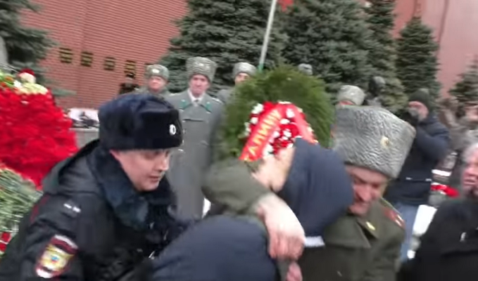 Сегодня, 5 марта, в годовщину смерти Сталина его фанатики проводили мерприятия у могилы советского "вождя" возле Кремлевской стены, передает Час Пик.
