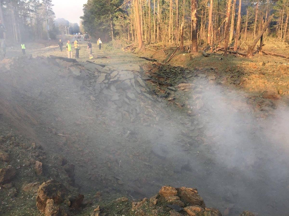 WHOA. A truck explosion caused this giant crater in an Arkansas highway this morning. Highway 278 is still closed >> https://t.co/3fhFOUDEED