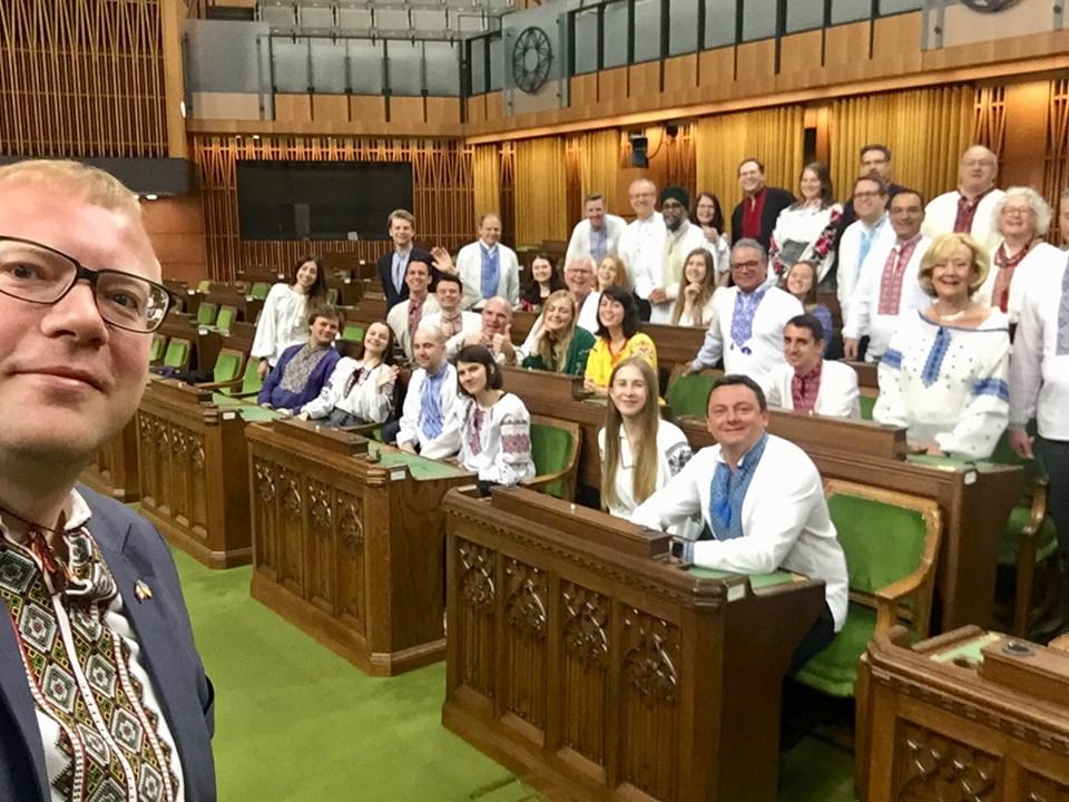 День вышиванки в Оттаве празднуем с канадскими депутатами и украинским интернами", - написал Шевченко.