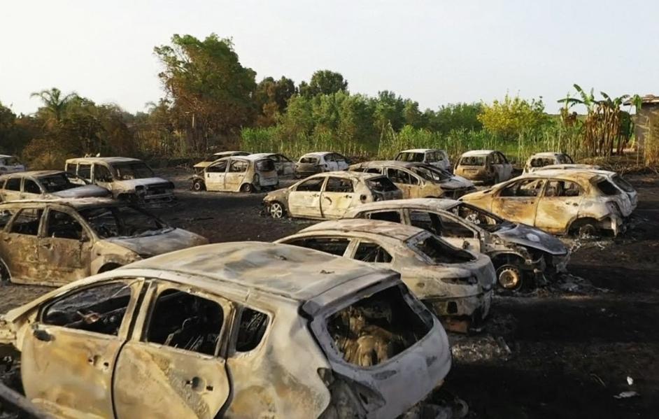 41 автомобиль сгорел на парковке возле одного из сицилийских пляжей. Люди обычно оставляют здесь свои машины и идут отдыхать на пляж Элоро.