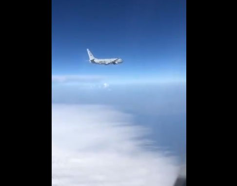 Еще немного съемок от подписчика. Перехват американского Р-8 Посейдон в нейтральном небе в 75 километрах от побережья Крыма. pic.twitter.com/Y9xIPPSBsE