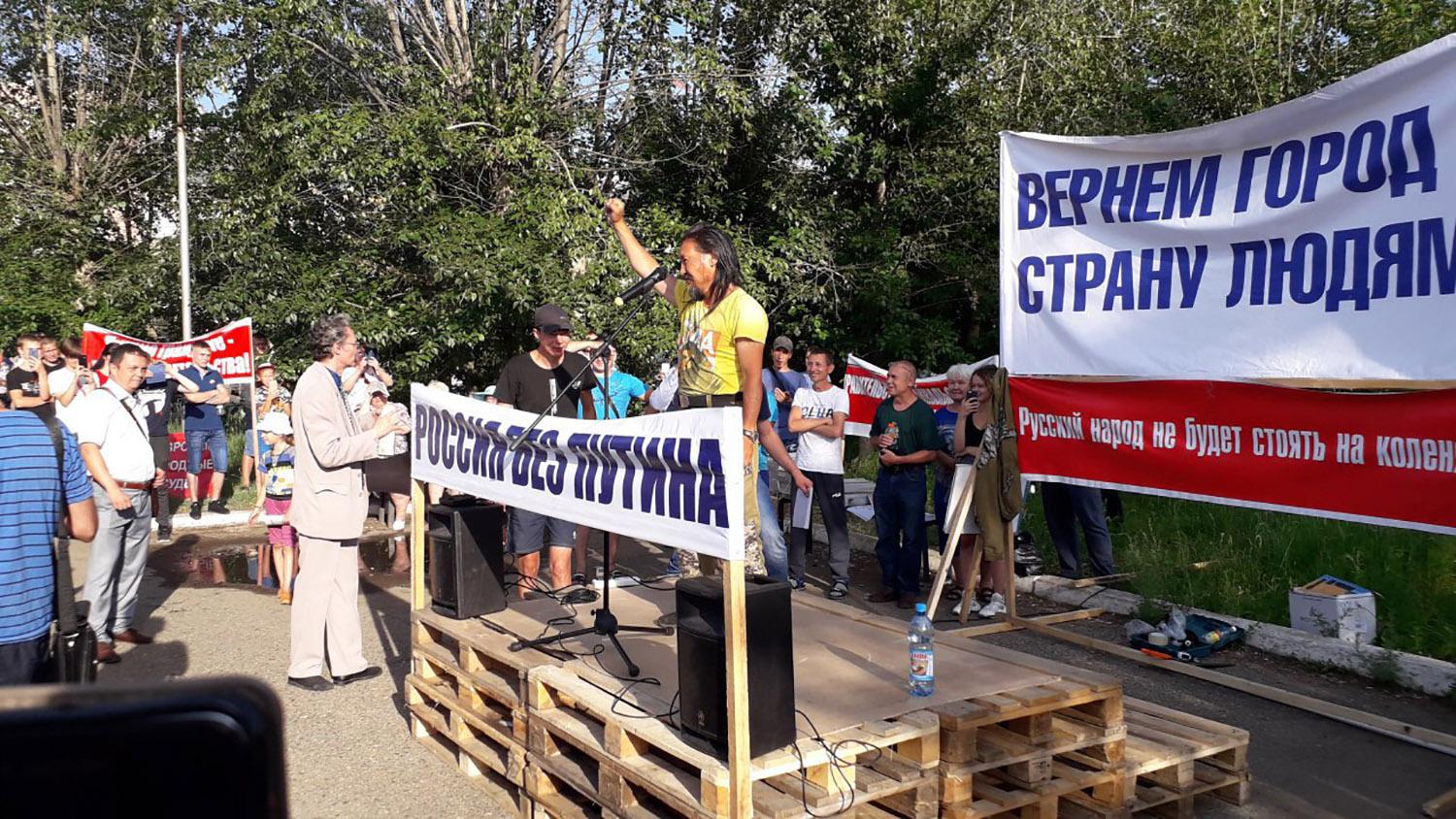В числе других на митинге выступил шаман Александр Габышев, который весной вышел из Якутии с целью дойти до Москвы и "изгнать злого духа Путина из Кремля".