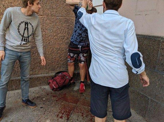Синовики жестко избивают протестующих дубинками. Одному парню разбили голову.