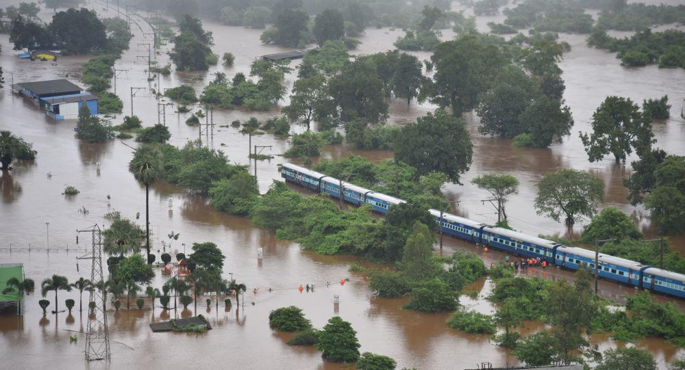 Индийские спасательные службы в субботу эвакуировали 1050 пассажиров из поезда, который застрял по пути в Мумбаи на залитом сильнейшим муссонным дождем полотне.