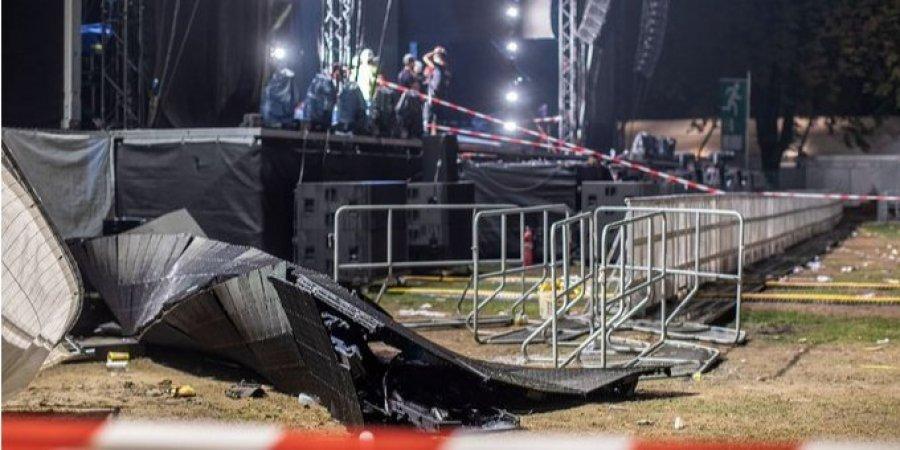Во время выступления началась гроза и поднялся сильный ветер, что привело к обрушению светодиодной стены сцены.