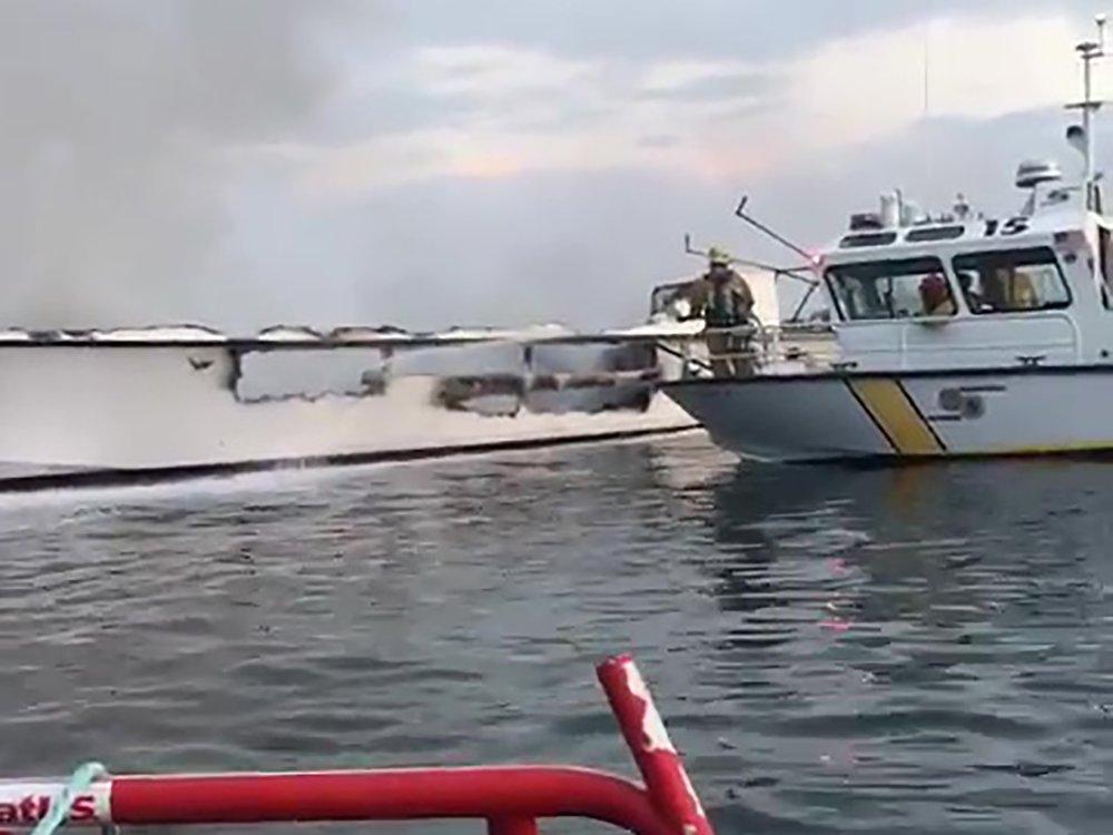 Пять из шести членов экипажа спаслись в начале пожара, прыгнув в надувную лодку, которую они направили к соседнему судну.