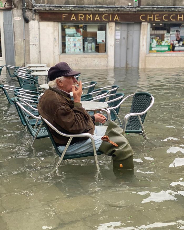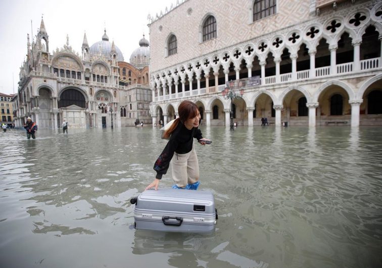 Тем не мнее, даже во время потопа в Венеции есть туристы. Они надевают высокие резиновые сапоги и гуляют по залитым водой улицам.