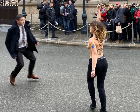 Brisk start for the Ukraine - Russia summit with some topless protestors outside the Elysee. pic.twitter.com/xyh98WBphI