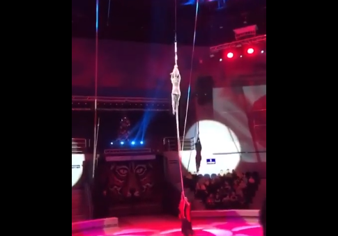 В российском Владивостоке во время циркового представления актробатка не удержалась на канате и упала с большой высоты.