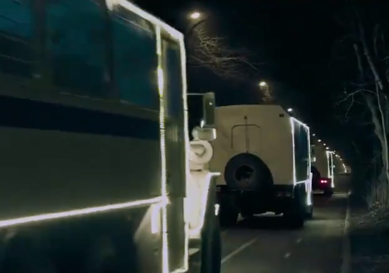 Вместо красных грузовиков в кадре едут светящиеся огоньками автозаки, на фоне звучит песня: "Автозак is coming". Затем полицейский в костюме Деда Мороза приглашает празднующих людей внутрь машины. В конце ролика появляется надпись: "С Новым годом, россияне!".