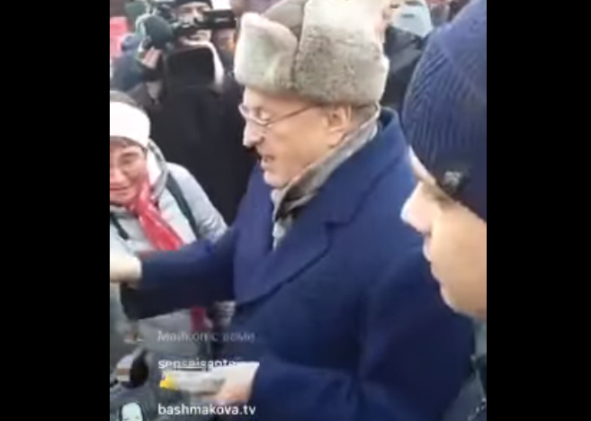 В сети появилось видео, как одиозный лидер российской партии ЛДПР Владимир Жириновский раздает россиянам денежные купюры.