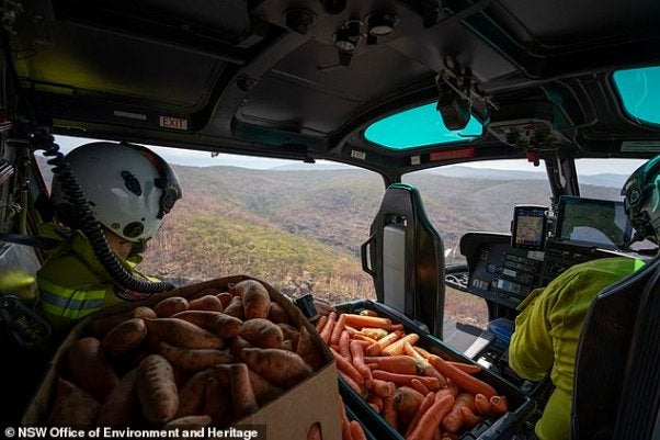 В Австралии для животных, которые лишились пищи вследствие масштабных лесных пожаров, сбросили с воздуха тонны овощей.