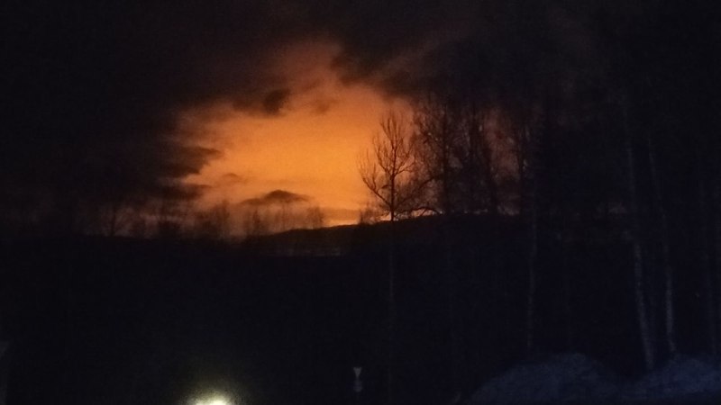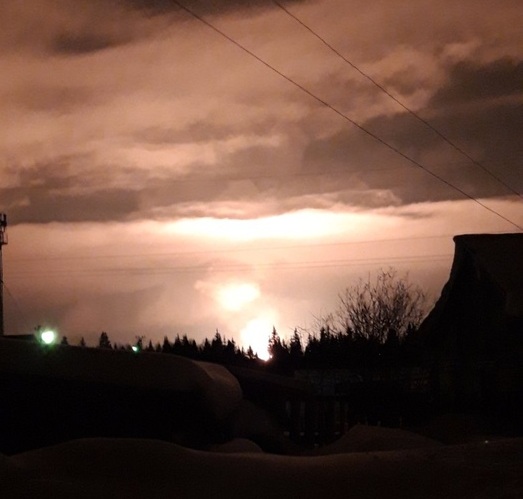 Местные жители говорят, что не слышали взрыва, зато на многие километры видно зарево - пламя осветило облака.