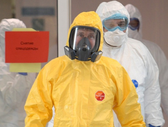 Во время визита в медучреждение глава Кремля облачился в скафандр, передает Час Пик.