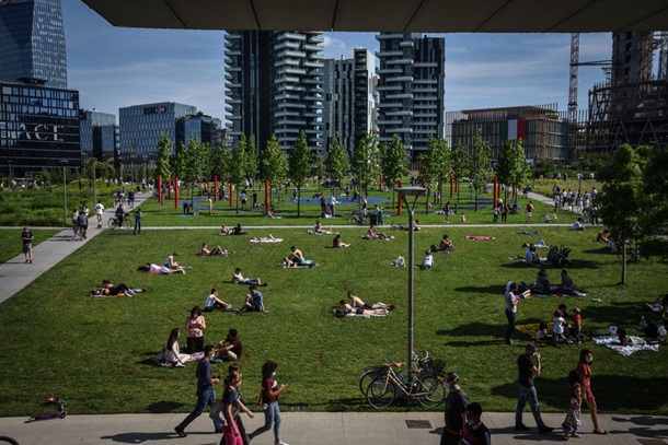 После двух месяцев карантина итальянцы массово вышли гулять и отдыхать в эти выходные. Многие люди без масок, социальная дистанция не соблюдается.