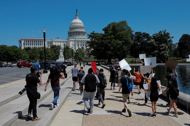 Массовые протесты вспыхнули после того, как во время задержания полицейский Миннеаполиса повалил 46-летнего Джорджа Флойда на асфальт лицом вниз и стал ему коленом на шею.