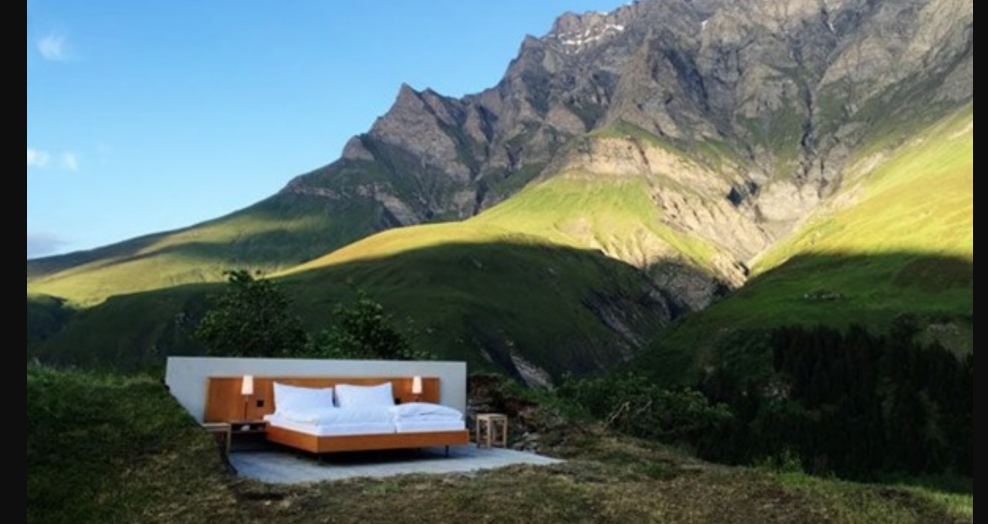 В Швейцарии открыли первый в мире отель, у которого нет ни стен, ни крыши. Фактически, он представляет собой кровать, стоящую под открытым небом.