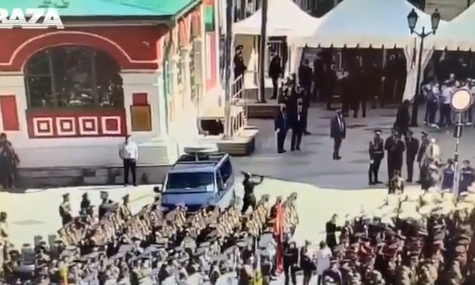 В Москве на Красной площади прямо перед парадом Победы 24 июня один из солдатов набросился на автомобиль Федеральной службы охраны и начал крушить его прикладом автомата.