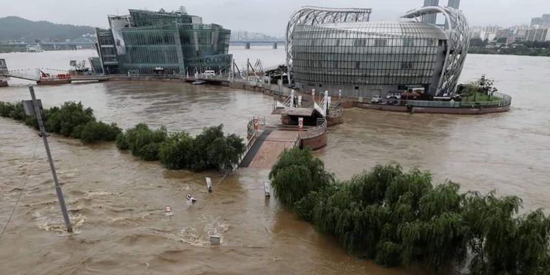 Согласно прогнозам, на территории Южной Кореи, где дожди не прекращаются с начала месяца, еще ожидается выпадение от 80 до 250 мм осадков.