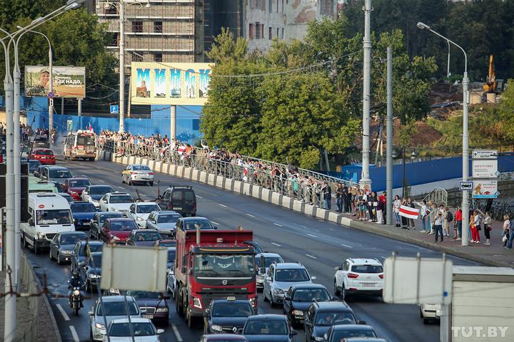 Автомобили, проезжающие мимо "Цепи покаяния", поддерживали демонстрантов звуковыми сигналами.