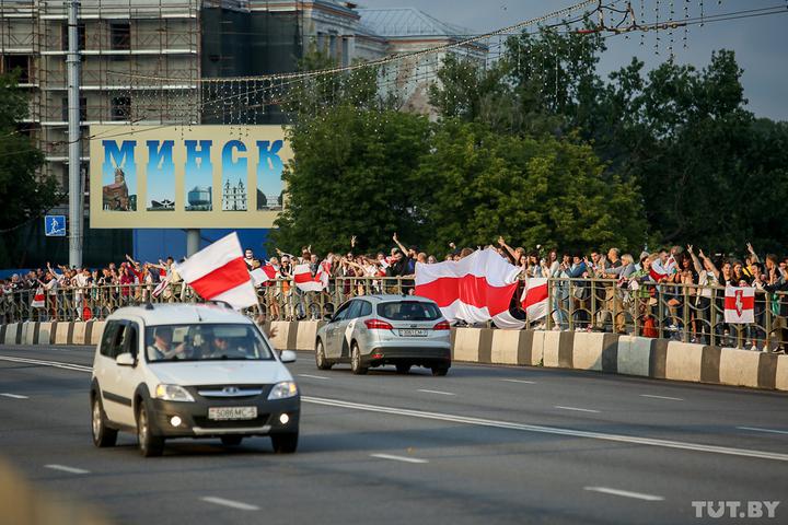 После акции участники "цепи" собрались на площади Независимости в центре Минска.