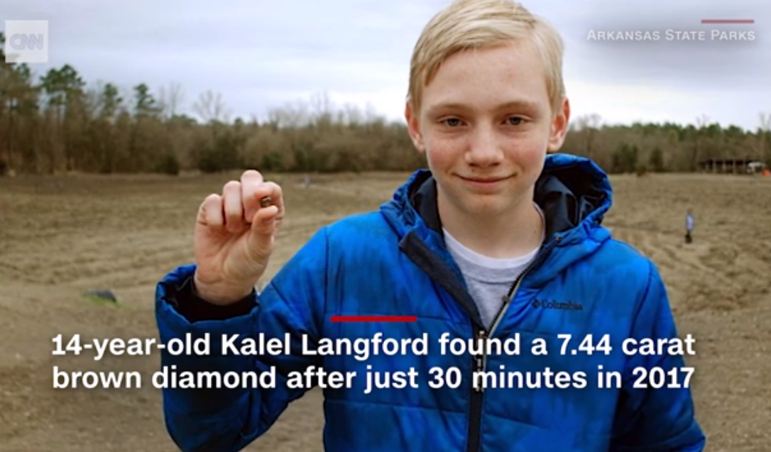 Кинард был в парке с друзьями в День труда. Как рассказал мужчина, все, что было похоже на кристалл, он клал в сумку. Один из кристаллов, который Кинард сначала принял зу кусок стекла, оказался настоящим алмазом весом 9,07 карата.
