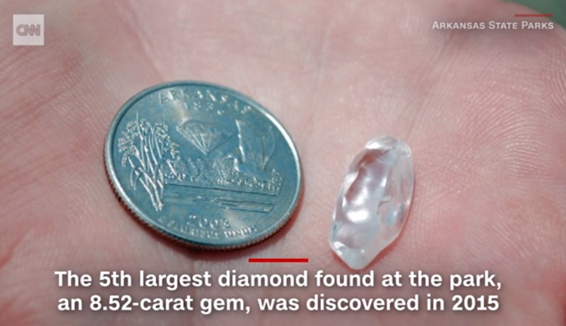 Посетители парка за 10 долларов могут почувствовать себя настоящими искателями сокровищ, разыскивая алмазы на поле площадью 15 га. 33-летний житель Арканзаса Кевин Кинард приезжал туда несколько раз, прежде чем 7 сентября ему посчастливилось найти второй по величине алмаз за всю историю парка.