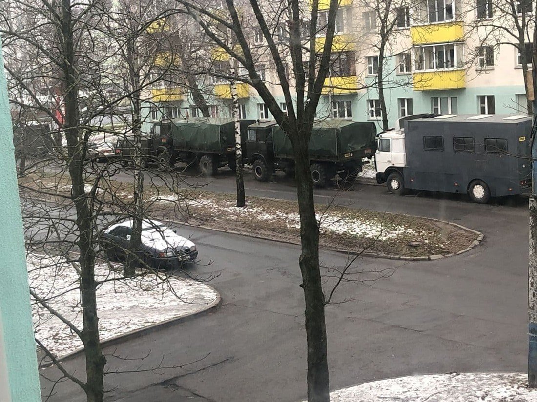 В СМИ сообщают, что силовики усиленно готуются к акции протеста. Из окрестностей белорусской столицы в сторону центра Минска едут водометы, автозаки и броневики.
