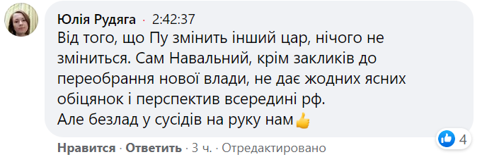 О протестах в России украинцы высказываются по-разному. Одни считают, что перемены в РФ нужны, и хорошо, что народ начал "просыпаться". Хотя многие не верят в успех протестного движения в России и считают, что все, чего добьются демонстранты - это отбитые полицейскими дубинками почки.