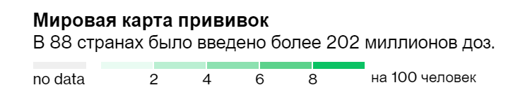 На сегодняшний день во всем мире введено уже более 202 миллионов доз вакцин против COVID-19. Кампания по вакцинации от коронавируса проходит в 88 странах.