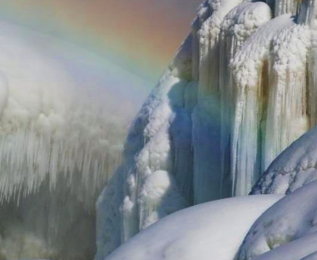 Сильные морозы, которые обрушились на штат Нью-Йорк, привели к тому, что Ниагарский водопад покрылся ледяным панцирем. Так, на водопаде образовались многометровые сосульки, которые время от времени с сильным грохотом срываются вниз.