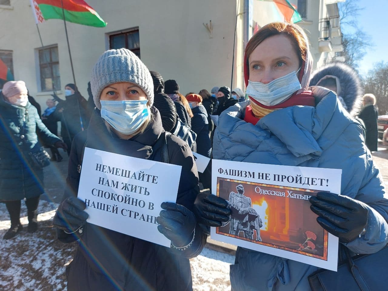 В частности, пикетчики выступали против "фашизма", "развязывания цветных революций" в Беларуси, а также вспомнили события в Одессе в мае 2014 года.