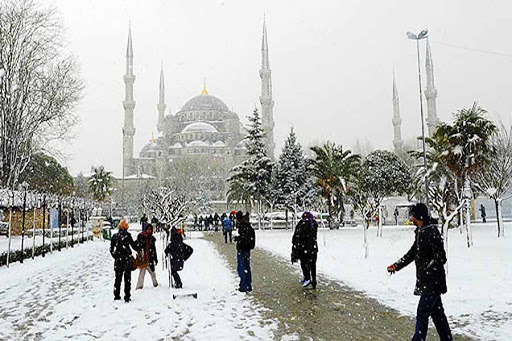 Кроме того, большое количество снега выпало в Стамбуле. Из-за непогоды паромное сообщение через Босфор было прервано.