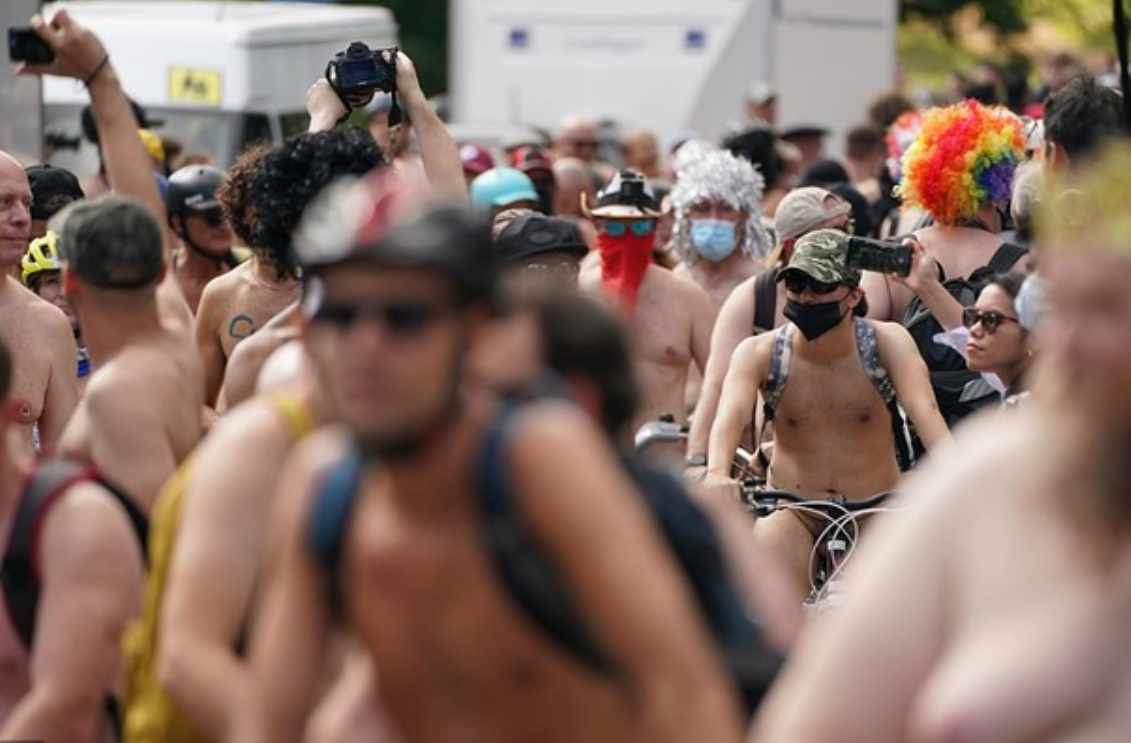 В британской столице прошла самая экстравагантная велоакция. По улицам Лондона проехались обнаженные велосипедисты.
