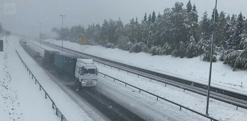 Во вторник, 14 сентября, на севере Финляндии выпал первый в этом году снег. Обильный снегопад осложнил движение на дорогах.