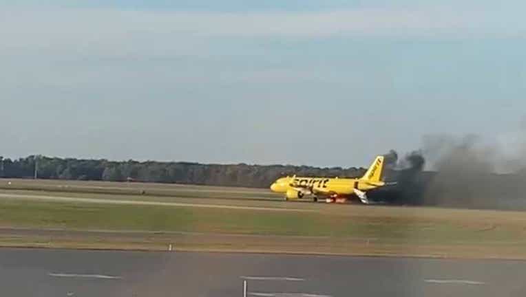 One of the engines of a Spirit Airlines passenger plane caught fire during takeoff from the American Atlantic City airport due to a bird hitting it.