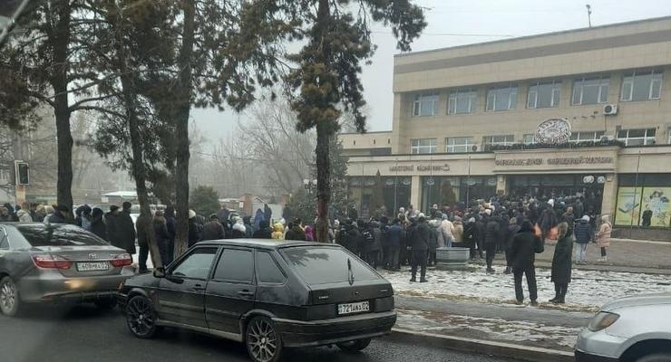 В Казахстане на фоне протестов образовался дефицит продуктов питания и топлива, люди собираются в очереди у банкоматов.